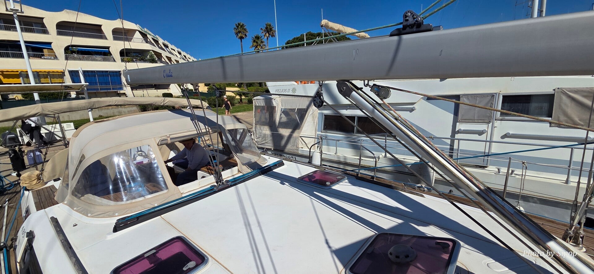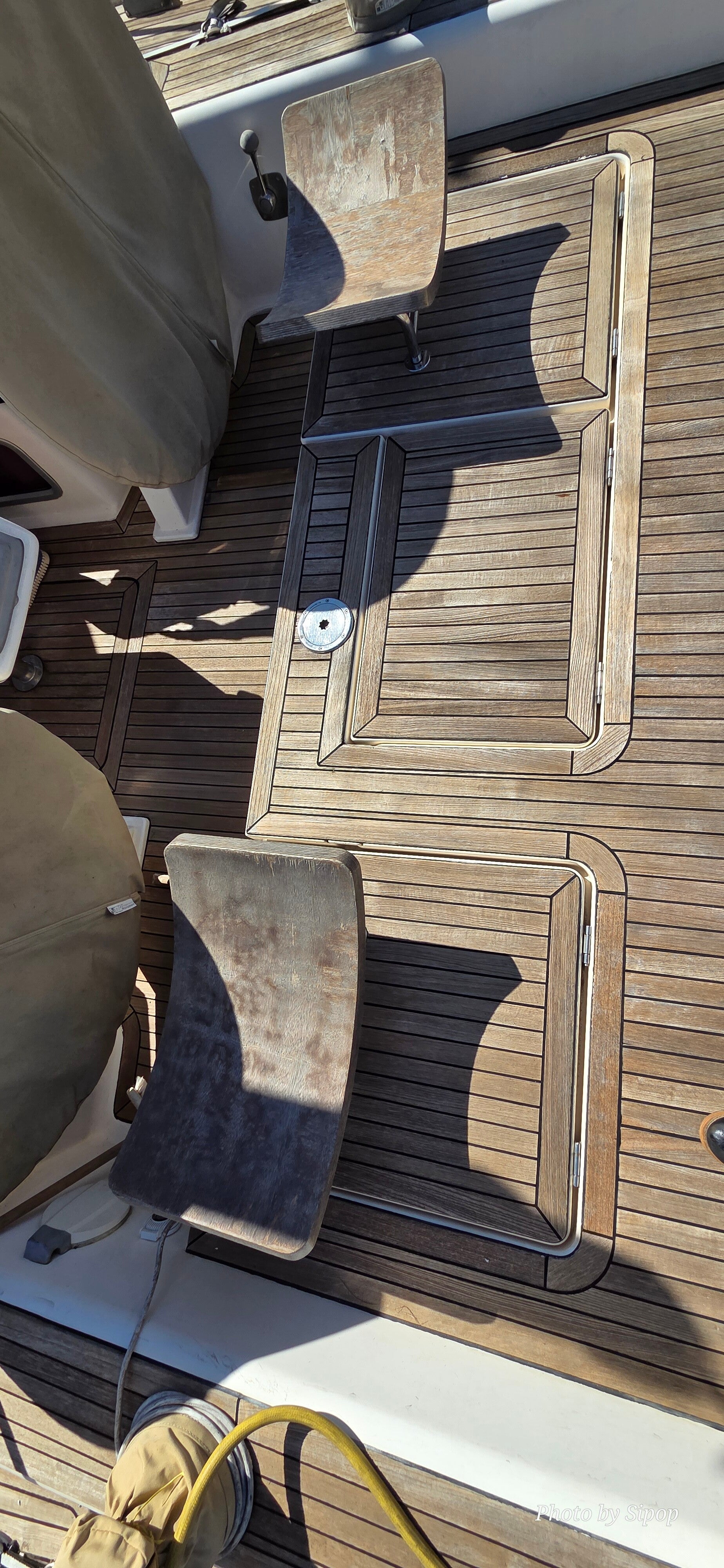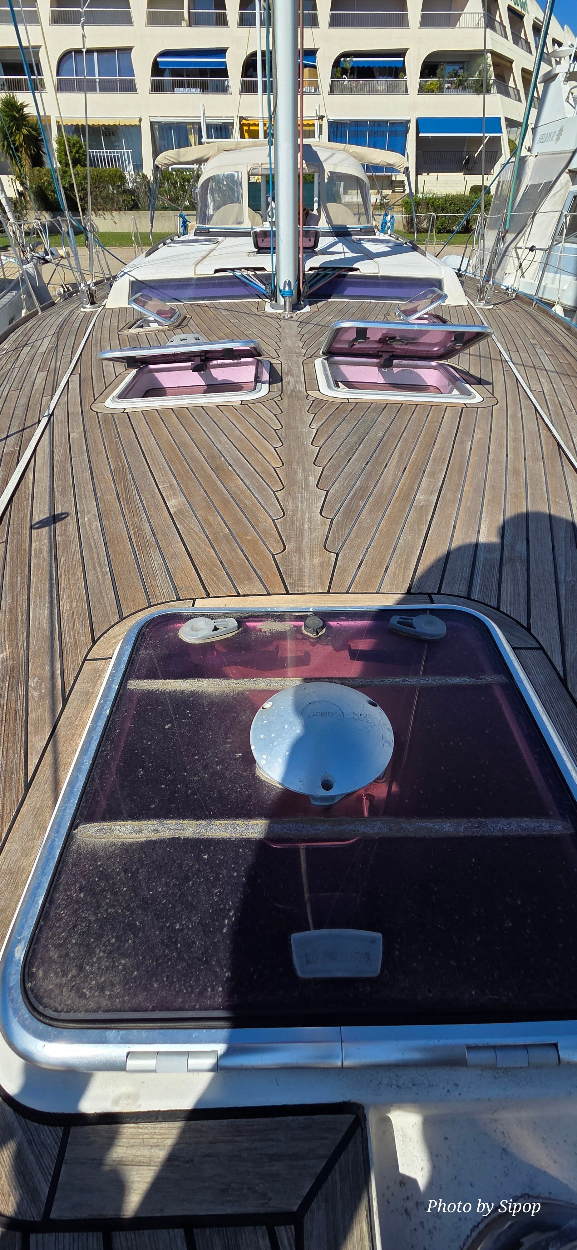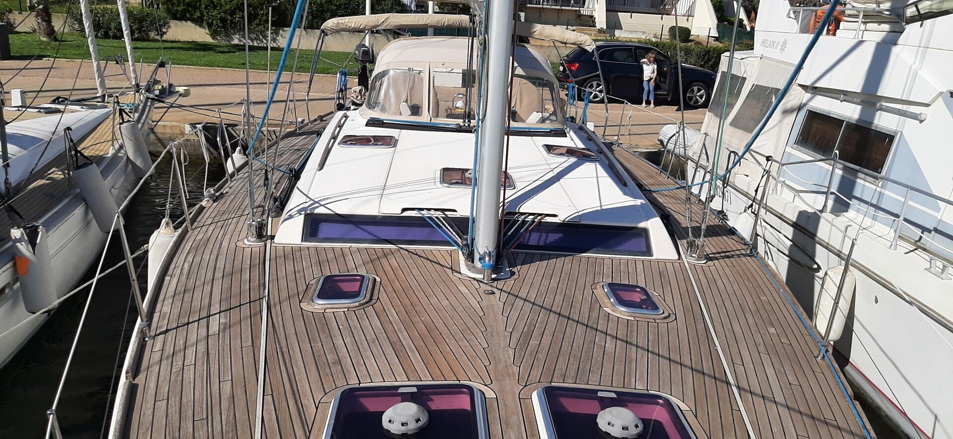 Le yacht est équipé d’un moteur fiable Volvo Penta 75CV totalisant moins de 900 heures de fonctionnement. Son plan de pont intelligemment conçu, avec six winchs électriques, permet de gérer l’ensemble des manœuvres directement depuis le cockpit, assurant une navigation à la fois simple, sûre et agréable, même en équipage réduit.