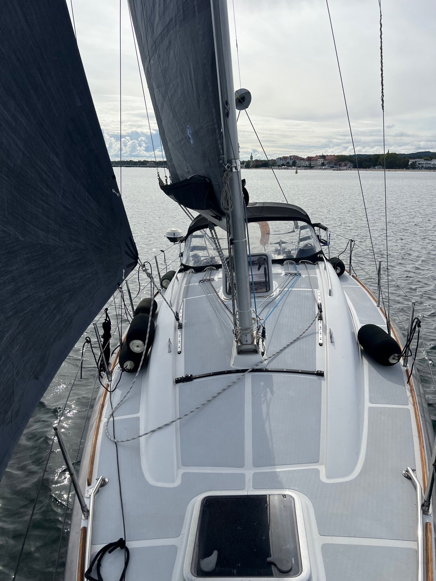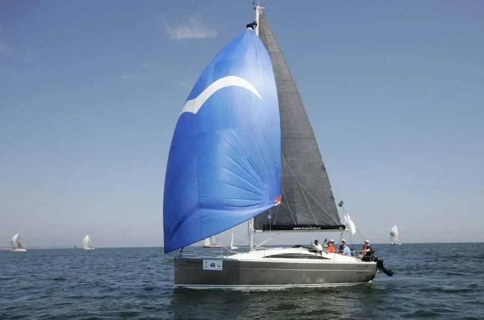 - voiles neuves et sombres ( foc sur enrouleur, GV avec deux prise de ris)