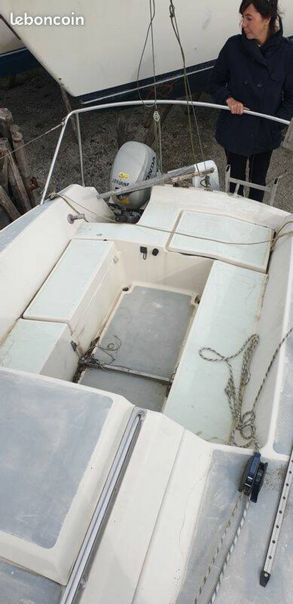 Compas, poste radio, lumières intérieures + feux, allume cigare, ancre OK. Travaux réalisés depuis son acquisition en 2012 : Barres de flèches neuves, support moteur arrière, pilote automatique neuf (installation à finir), sondeur lock vitesse neuf, peintures extérieur et intérieur, carénage annuel, vitres cabines droite et gauche neuves, quille rénové, enceintes extérieur, bandes adhésives latérales repeintes en vert, antifouling refait tout les deux ans. L’électricité est à refaire pour que tout marche (l'essentiel du matériel est là), un bon coup de nettoyage également, safran opérationnel néanmoins pas en parfait état.